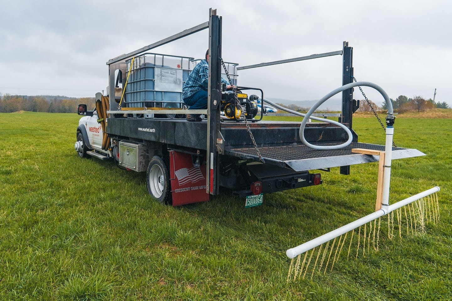 What becomes of the urine collected? It’s brought back to the company’s hub in Williston using special trucks that also have separate tanks. (At the moment, the solid waste is sent on to a treatment plant, just as all waste would be at any porta-potty company—it’s too energy-intensive and not feasible at the current scale of the operation to make use of the solids, but there’s hope for the future, potentially making biochar, says Binstock.) Once the urine reaches the Wasted* lab, processing begins. “We bring it into storage tanks as raw urine, we pasteurize it, and that pasteurizer is built to maximize nutrient recovery, so as ammonia gasifies, it gets captured and re-submerged into the liquid and transforms back into nitrogen form,” she explains. “We try to capture and recycle as much of the nutrients as possible. The pasteurizer also heats it up to a certain level that basically deals with fecal coliform, or any of the harmful bacteria that might be found in the urine. We talk about that as cleaning the urine, and then it’s ready to go into a second stage of storage. At that point, in the state of Vermont it is understood to be ‘exceptional quality’ fertilizer and is ready for land application. Because our soils are high in phosphorus in Vermont, we do a second step, and that’s through a reactor where we just introduce a pet-friendly road salt, and that pulls out the phosphorus (which is used to make a separate product; more on that below). What’s left is a nitrogen-rich liquid product that we call Golden Grow. And we sell that to farm partners across our service radius.”